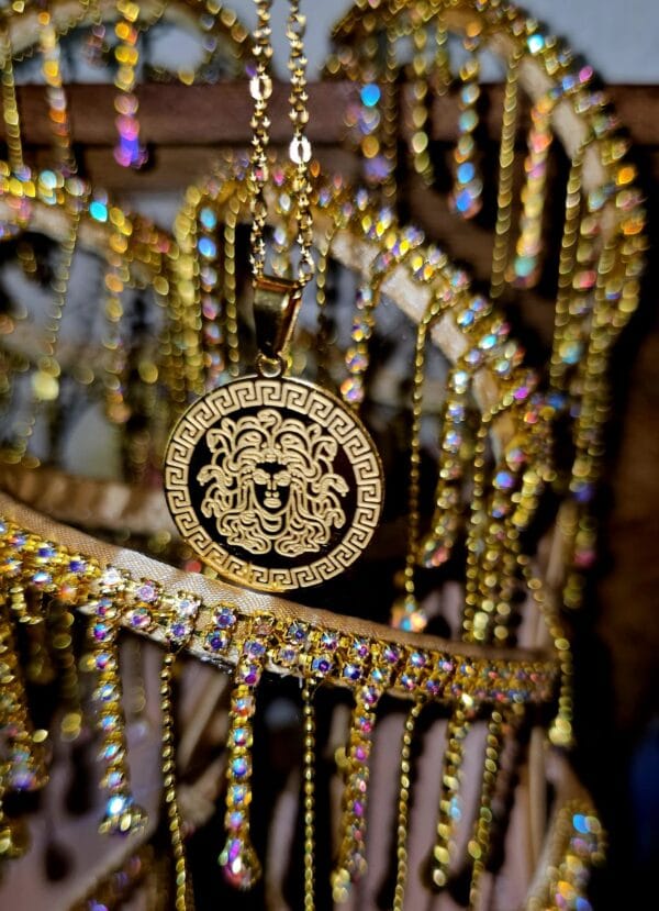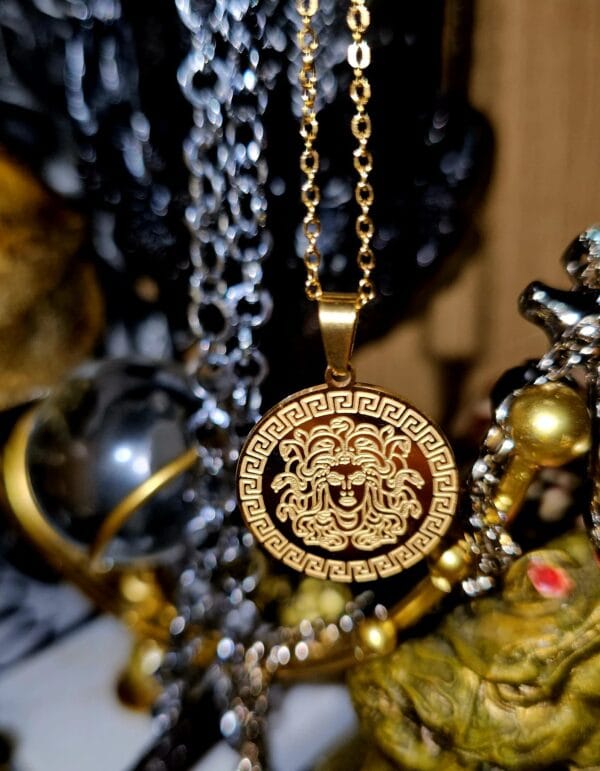 La cabeza de la Gorgona, monstruo cruel y horripilante para cualquier mirada negativa hacia a ti. Por lo cual, es una gorgona es una entidad guerrera con la cabellera viva y llena de serpientes, y una terrible mirada petrificante.